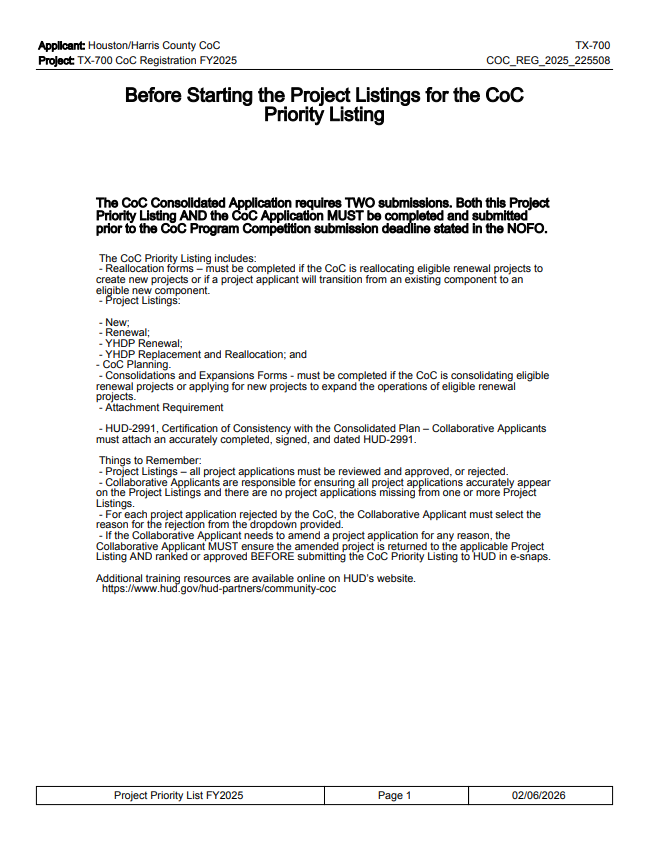 The Way Home formally opened the FY 2024–2025 Continuum of Care (CoC) Competition in response to HUD’s reopening of the FY24–25 Notice of Funding Opportunity (FR-6800-N-25), pursuant to the federal court order issued on December 23, 2025.